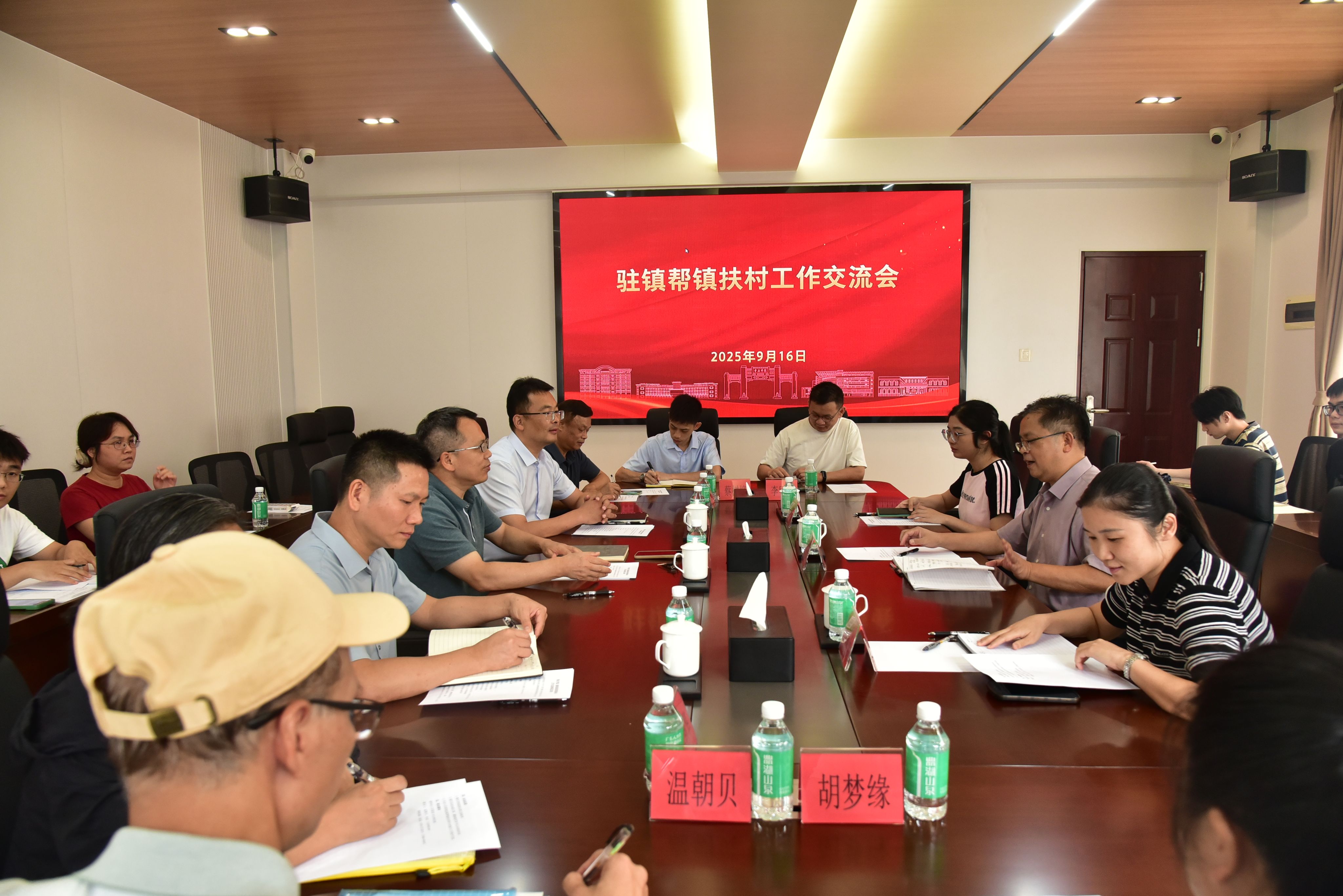 本网讯 9月16日下午,学校召开驻镇帮镇扶村工作交流会。副校长胡文涛,德庆县政协副主席、播植镇党委书记冯伟南,播植镇党委副书记、镇长李东华出席会议,相关职能部门负责人及帮扶项目组成员参会。