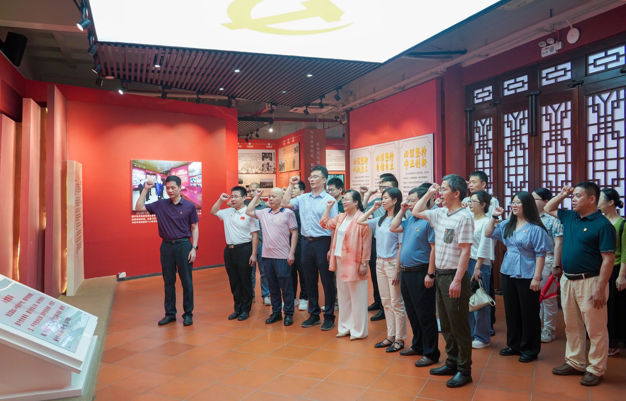 28日上午全体党员参观叶挺独立团练兵处遗址以及叶挺独立团团部旧址纪念馆,在党旗前全体党员重温入党誓词,并庄严宣誓。