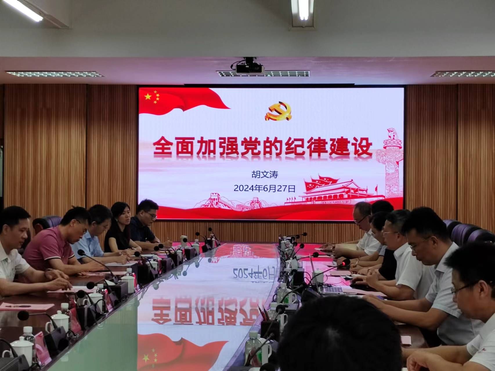 27日下午,胡文涛以《全面加强党的纪律建设》为题,从“加强纪律建设是全面从严治党的治本之策、严明政治纪律和政治规矩、加强经常性纪律教育、严格各项纪律执行”四个方面全面梳理了不同历史时期党的纪律建设发展历程,并以典型案例证明纪律严明是党不断从胜利走向胜利的重要保障。吴宝榆处长对三个支部联合共建表示赞同,党纪教育不是一时一刻,而是长久学习,大家务必高度重视,准确把握,坚持学深悟透,学以致用。